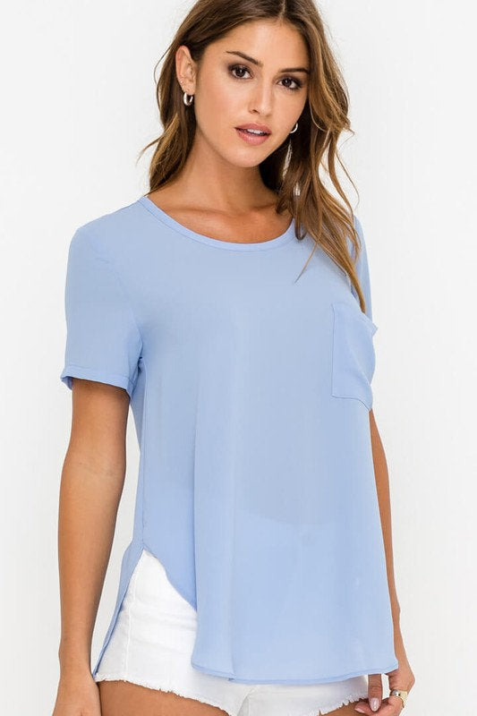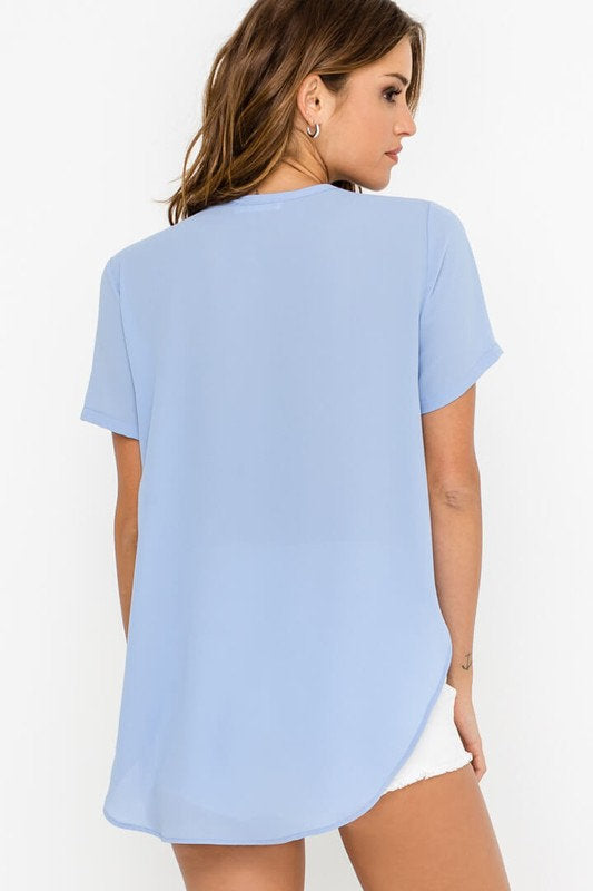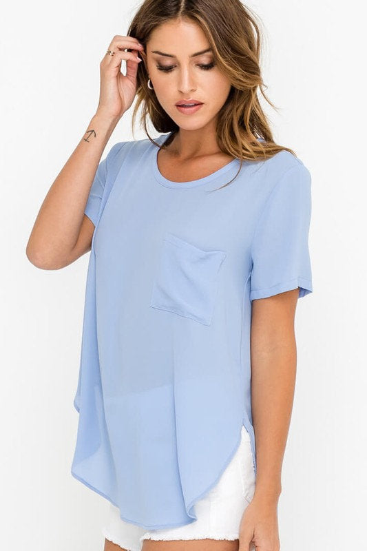 - Made in a lightweight breezy fabric with rounded flowy hi-lo hem